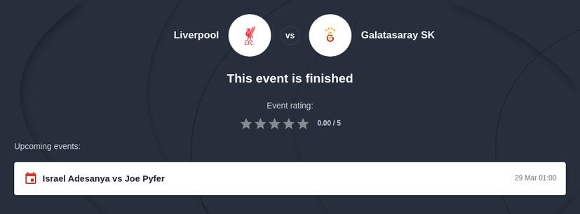 Now that you know the odds, go the the top bookmakers and bet on Liverpool vs Galatasaray!