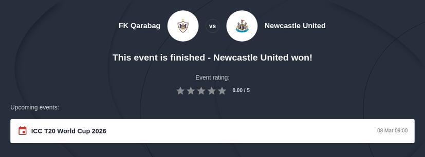 FK Qarabag vs Newcastle United - Best odds